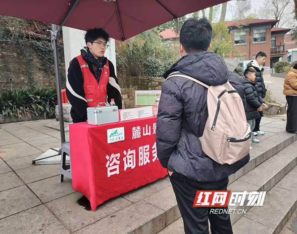 为保障春节假期游客游玩便利舒适,维护景区及城市安全有序运行,在共青团长沙市委、岳麓山风景名胜区管理局的联合指导下,麓山景区管理处携手长沙市文明旅游青年志愿服务总队从腊月廿八持续至正月初七,每日组织20名青年志愿者,按需驻守岳麓山东门、南门等核心景点及游客聚集区域,开展文明旅游志愿服务。
