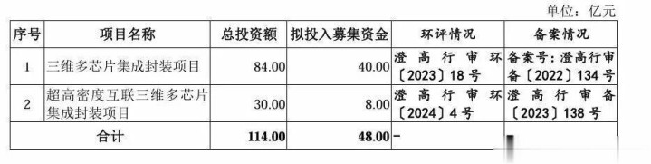 更值得关注的是,此次IPO盛合晶微拟募资48亿元,其中40亿元用于三维多芯片集成封装项目,8亿元用于超高密度互联三维多芯片集成封装项目。